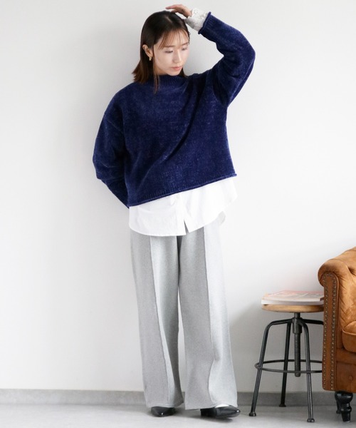 柔らかな肌触りが魅力◎トロミのある落ち感が可愛いベロアモール素材のニットプルオーバー♪◇Point◇ふんわりとした滑らかな肌触りと、やわらかな風合いが心地よいベロアモールを使用したニット。発色の良さもポイント!光沢のある素材で1枚でも着映えするアイテムです。モックネックデザインでインナーを気にせずざっくりと着用できます。ややフレアになった袖やロールアップしたデザインが可愛いポイント◎。オーバーサイズデザイン+ショート丈であらゆるボトムスと好相性♪秋冬の気分を盛り上げる鮮やかなカラー展開も魅力です。◇Material◇シワになりずらいポリエステルのニット生地。包み込まれるような、柔らかで軽く暖かい着心地が魅力のベロアモール糸を使用。毛玉が気になりづらく、ニット特有のチクチクした感じもありません。厚すぎず薄すぎずの生地なので春秋冬とロングシーズンでご着用いただけます。※手洗い可能。洗濯ネットをご使用いただき、押し洗いを推奨いたします。柔軟剤のご使用はお控えください。※生地の特性上、摩擦に弱いです。ベルトやバッグ、シートベルトなどによる引っ掛かりにはご注意ください。◇Coordinate◇インしなくてもすっきり着られるショートな丈感なので、ボトムを選ばないシンプルで合わせやすい1枚♪ワイドパンツと合わせたりあえてタイトスカートと合わせたリーンスタイルもオススメ。キャミワンピースやサロペット・オーバーオール等のインナーにも◎ゆとりのあるリラクシーな着心地なので、おうちファッションや旅行中の移動にもストレスにならず快適に着用できます。※照明や天候により実際の色味と異なって見える場合がございます。ご了承くださいませ。【キーワード】#Y2K#10代#20代#30代#40代#50代#冬コーデ#プレゼント#ギフト#きれいめカジュアル