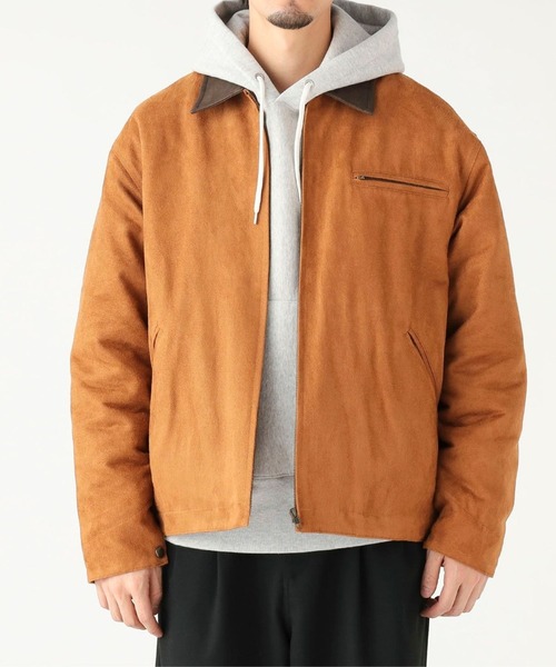 <春先にもおススメ!>羽織ればキレイめにまとまる大人ブルゾン【デザイン】・クラシックなワークジャケットをベースにしたブルゾン。 ・ジップアップのフロント、襟の切り替え、胸元のジップポケットなど、シンプルな中にアクセントをきかせたディテールが特徴です。 ・袖の切り替え(2枚袖)がカジュアルな印象をプラス。【素材】・なめらかで上品な質感が魅力のフェイクスエード素材を使用。 ・本物のスエードのような高級感を持ちながら、軽量でお手入れがしやすいのが特徴です。 ・暖かみのある素材感で、秋から冬にかけて活躍します。【サイズ】・ややゆとりのある、リラックスフィットのサイジング。・様々なインナーと合わせやすいサイズ感です。