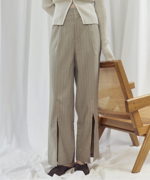 ■着用■170cm■コメント■ハイウエストシルエットが気になる腰回りをすっぽりとカバーしてくれる、着痩せパンツ。裾のZIPの開け具合でお好きな深さのスリット入りパンツに。膝下から程よいフレアラインで、とことん美脚に見えるように追求しました。■スタイリング■STRIPED SIDE SLIT JKT(ストライプサイドスリットJKT)【5543017】とのセットアップスタイリングがおすすめです。ジャケットとの合わせはもちろんのこと、オーバーサイズのニットやスウェットと合わせたカジュアルスタイルやワンピースとのレイヤードスタイルなど、幅広いシーンで活躍してくれます。■骨格タイプコメント■骨格ナチュラル▼四角い腰回りをきれいにカバーしてくれます。ビッグシルエットなトップスと合わせて、とことんゆるっとカジュアルなスタイリングがおすすめです。骨格ウェーブ▼ワイドパンツは脚のラインを消してしまうので、骨格ウェーブさんにとって苦手なアイテムですが、こちらはハイウエストなデザインなので、トップスをインしたり、ウエストマークすることで重心が上にあがりスタイルアップ効果満載!ストレートタイプ▼重心が上のほうにあってウエスト位置が高いストレートタイプの方は、ゆるっとしたトップスよりもきっちりとしたデザインの物と合わせることで、だらしない印象を解消してくれます!また、抜け感のあるシアー素材の物や、Vネック、同素材のジャケットなどで合わせると重たくならず、すっきりとした大人綺麗なスタイリングに。【原産国】中国【Product Number】5543037【Color】BEIGE,GREY【Size】38【Size Chart(cm)】着丈 101.5ウエスト 34.5裾幅 26HIP 99【Material】ポリエステル 85%レーヨン 11%ポリウレタン 4%※商品画像はサンプルのため、色味やサイズ、素材の混率等の仕様に変更がある場合がございますので、予めご了承ください。【お手入れ方法】クリーニングネットを使用して下さい。濡れたままの放置や長時間の浸漬はしないで下さい。アイロンは、当て布を使用してください。摩擦や引っかけに、ご注意下さい。移染しやすいので、他のものと分けて洗濯して下さい。釦部分にはアイロンを当てないで下さい。ファスナーは閉じて洗濯してください。【商品について】商品の品質には万全を期しておりますが、万一ご注文の商品と内容が違う場合や商品の破損、傷みなどの 品質上問題のある不良品がございましたら早急に返品・交換の対応をさせていただきます。【返品交換について】お客様により良い商品をお安くご提供するため、当店では不良品以外の返品・交換は一切お受け致しておりません。ご注文の際は、よくご確認の上お申し込みいただけますようお願い致します。