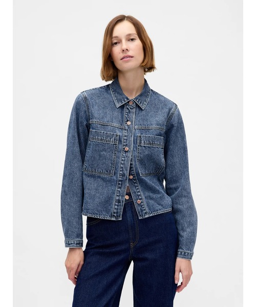 オーセンティックなノンストレッチデニムで作られたショート丈シャツジャケットポインテッドカラー長袖、袖口ボタンフロントボタンフロントとバックにシームのディテール胸にパッチポケットミディアムウォッシュフィット: オーバーサイズ、ストレートシルエット、ゆとりのあるリラックスフィットタイト過ぎずルーズ過ぎず、クラシックなフィット感がお好みの方にはワンサイズダウンをおすすめします。ウエストまでのショート丈サステナビリティ: このデニムシャツジャケットは独自の洗浄技術「ウォッシュウェル」を使って生産しています。「ウォッシュウェル」は従来の方式に比べて20%以上の節水を実現する洗浄技術です。よりサステナブルなコットン: リサイクルコットンを5%使用しています。リサイクル素材を使用することで、バージン素材に比べて資源の使用と生み出される廃棄物の量を削減しています。この商品は、RISE (Reimagining Industry to Support Equality) を通じてジェンダー平等と女性のエンパワーメントを精力的に推進する工場で生産されています。*商品タグに記載の価格とサイト上の販売価格が異なる事があります。【Gap ギャップ】1969年にアメリカ・サンフランシスコで創業以来、世界的なカジュアルファッションブランドとして、常にモダンなアメリカンカジュアルを提案し続けています。※商品画像は、光の当たり具合やパソコンなどの閲覧環境により、実際の色味と異なって見える場合がございます。予めご了承ください。