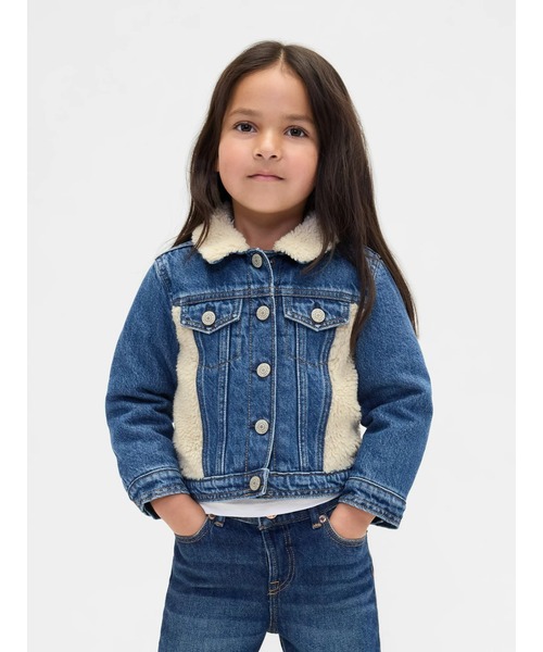 ボアパネル付きのオーセンティックなノンストレッチデニムジャケット襟ボア、スプレッドカラー長袖、袖口ボタンフロントボタン胸にボタン&フタ付きのパッチポケットシェルパをあしらった両サイドパネルと背中のハート柄ミディアムウォッシュ独自の洗浄技術「ウォッシュウェル」 を使って生産しています「ウォッシュウェル」は従来の方式に比べて20%以上の節水を実現する洗浄技術です。このデニムはリサイクルコットンを5%使用しています。リサイクル素材を使うことで、バージン材の使用を減らし、資源の節約と廃棄物の削減につながります*商品タグに記載の価格とサイト上の販売価格が異なる事があります。【Gap ギャップ】1969年にアメリカ・サンフランシスコで創業以来、世界的なカジュアルファッションブランドとして、常にモダンなアメリカンカジュアルを提案し続けています。※商品画像は、光の当たり具合やパソコンなどの閲覧環境により、実際の色味と異なって見える場合がございます。予めご了承ください。