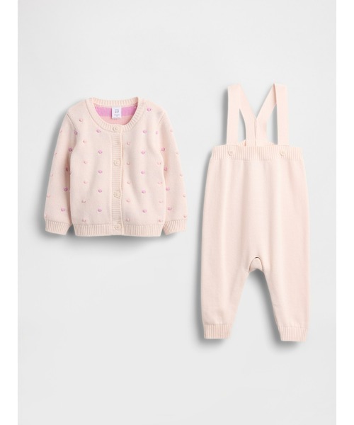 優しく心地良い肌触りのコットンニットカーディガンとニットオーバーオールのセット クルーネック 長袖 フロントボタン カーディガンの全体に水玉刺しゅう バッククロスストラップ、フロントに飾りボタン付き 着せ替えやおむつ替えをラクにしてくれる股下の隠しスナップボタン付き 袖口リブ、裾リブ *商品タグに記載の価格とサイト上の販売価格が異なる事があります。 【Gap ギャップ】1969年にアメリカ・サンフランシスコで創業以来、世界的なカジュアルファッションブランドとして、常にモダンなアメリカンカジュアルを提案し続けています。 ※商品画像は、光の当たり具合やパソコンなどの閲覧環境により、実際の色味と異なって見える場合がございます。予めご了承ください。