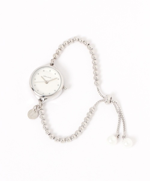 ブレスレットのような使い心地の腕時計細身のチェーンやワントーンカラーが大人っぽいブレスレット風ウォッチ。アクセサリー感覚で、普段使いからオケージョンシーンまで取り入れやすいアイテムです。キラッとしたエンドのパール調ビーズや、さりげないニコロゴがポイントに。お手持ちのアクセサリーとの重ね付けも可愛く、プレゼントにもおすすめです。