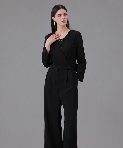 【Eternal Line 2026】 エレガントで上質なトリアセテート混のバックサテンジョーゼットのジョーゼット面を表地に使用しています。 より快適に着用して頂けるよう、撥水・吸水、透湿加工を施し、汗シミ防止の機能をもたせました。 パンツスタイルが新鮮に映る、オケージョンシーンにもぴったりな新しいオールインワンです。 袖付きなので一枚でコーディネートが決まり、オケージョンはもちろん、ちょっとしたお食事会、オフィスまで幅広いシーンで着用頂けます。 上身頃はカシュクールデザインでゆとりのあるシルエット。インナーにANAYI定番のキャミソールを合わせるのがお勧めです。後ろはトップスをアウトしているような見え方でドッキング風。 パンツは2タック入れて腰周りはゆったりとしたワイドパンツシルエットです。後ろウエストにはゴムを入れて履きやすく、着心地良いのが嬉しいポイント。 【付属】なし 【裏地】あり 【透け感】なし 【開き・留め仕様】フロント釦とファスナー開き 【伸縮性】なし 【ケア方法】クリーニング 【着用感・生地の厚さ】ジョーゼットのしっかりとした肉感のある素材 ネイビー着用 model:175cm 着用サイズ:38 ブラック着用 model:173cm 着用サイズ:38 【ANAYIサイズ表】 34サイズ:5号 XSサイズ相当 36サイズ:7号 Sサイズ相当 38サイズ:9号 Mサイズ相当 ・「商品のお気に入り登録」や「ブランドのお気に入り登録」で新商品や再入荷通知、セール通知などのお得な情報を受け取ることができます。 ・照明の関係により、実際よりも色味が違って見える場合がございます。 またパソコン・スマートフォンなどの環境により、製品と画像のカラーが異なる場合もございます。予めご了承ください。