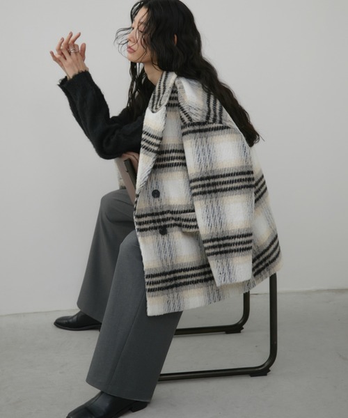 柔らかなシャギー素材で魅せる、大人のチェックミドルコート■デザイン存在感のあるチェック柄が印象的なミドル丈コート。ゆとりのあるシルエットとドロップショルダーが、抜け感のあるリラックススタイルを演出します。ダブルボタン仕様でクラシックな雰囲気を持ちながらも、柔らかい風合いと毛足のある生地感が女性らしい柔らかさをプラス。ヒップが隠れる丈感でボトムを選ばず、スタイルバランスをきれいに見せてくれます。シンプルなコーデに羽織るだけでトレンド感のある着こなしが完成する主役級アイテムです。■素材感ふんわりとしたタッチが魅力のシャギー素材を使用。軽さがありつつも暖かく、秋冬シーズンにぴったりの着心地です。■スタイリングデニムやワイドパンツと合わせてカジュアルダウンするのはもちろん、タイトスカートやワンピースと合わせてきれいめにも相性抜群。デイリー使いからお出かけまで幅広く活躍する万能アウターです。-----------------------透け感/なし光沢感/なし伸縮性/なし裏 地/あり厚 み/あり-----------------------※自宅洗濯不可※濃色品は、摩擦などにより他の衣類に色が移ることがありますのでご注意ください。※詳しいお手入れ方法は商品タグをご参照ください。【SNS掲載情報】@auntmaries.official公式Instagramアカウントにて新作情報をはじめ多彩なコンテンツを掲載しております。ぜひご覧くださいませ。【商品のお気に入り登録】完売カラーの再入荷通知やラスト1点の通知プライスダウンの通知も受け取ることができます。ぜひご登録ください◎【ブランドのお気に入り登録】新商品や再入荷など、ブランドの情報をいち早くお知らせします!ぜひご登録ください◎※ご注意※・屋外の光や照明の当たり具合で、実際の商品の色味とカラー別画像の色味に若干の違いが発生する場合がございます。・詳細画像と併せてご確認の上、ご注文いただきますようお願い致します。※ご注文いただいた予約商品のお届け時期の確認は、注文履歴ページより行えます。