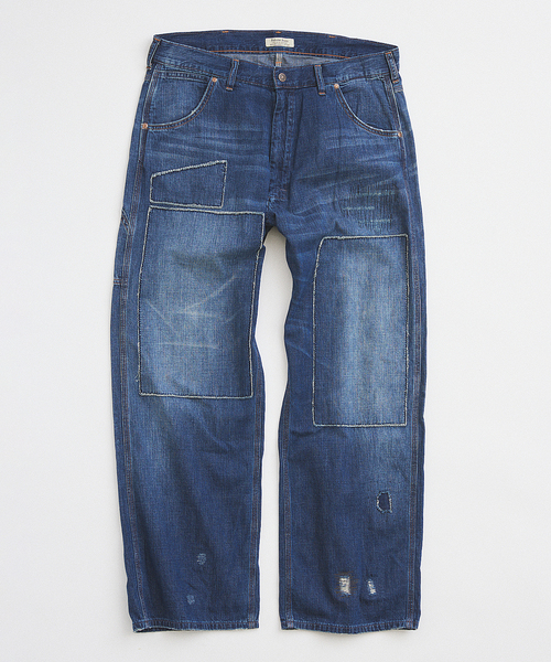 Relume Jeans Re-Make PAINTER PT 加工が魅力の、ヴィンテージ感漂う雰囲気を纏った、ペインターデニムが登場! 素材には8oz(オンス)のライトオンスデニムを使用。 タテ糸にムラ糸を使用しているため、洗い加工により自然な凹凸が生まれ、味わいのあるヴィンテージ風を表現したデニムです。 カラーは、INDIGO(ネイビー)とBLUE(ブルー)の2色展開。 ネイビー(040)はヴィンテージ感を控えめにした綺麗めなカラー、 ブルー(044)は長年履き込んだかのような日焼け加工を施したカラーが特徴です。 古着のペインターパンツのディテールを忠実に再現しており、 当て布やステッチなどリペア加工を施し、リアルなヴィンテージパンツを表現しました。 シルエットはゆったりとしたワイドストレートシルエット。 シンプルなTOPS合わせでも、この1枚でインパクトのあるスタイリングが完成されます。 ********************** 伸縮性:なし 光沢感:なし 厚さ:やや薄手 ********************** 【スタッフ着用コメント】 《スタッフA》 身長:177cm/体重:67kg/普段サイズ:L/着用サイズ:L サイズ感:ゆったりしたワイドでも、だらしなく見えないシルエット。 素材感:真冬以外オールシーズン活躍できそうな、デニムの中でも薄手の厚さ。 着心地:ゆったりしたシルエットと迫力ある加工感が、スタイリングの主役になるアイテム。 ********************** 《画像についてのご注意》 ※照明の関係により、実際よりも色味が違って見える場合があります。 またパソコン・スマートフォンなどの環境により、若干製品と画像のカラーが異なる場合もございます。 ※商品の色味は、商品アップ画像をご参照ください。 《商品のお気に入り登録について》 「カートに入れる」または「予約する」右側のハートマークを押していただくと、 再入荷、残り1点、セールなどの通知を受け取ることが出来ます。 本体:洗濯機洗い(ネット使用)