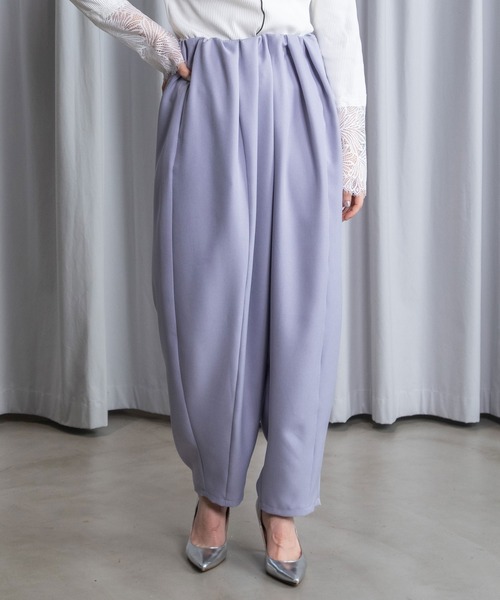 ■2026 PRE SPRING collection■ -MM COORDINATION- 定番ギャザーパンツ(ZMT152PT812)をコクーンシルエットに落とし込んだ進化版 同素材のトップス(ZMT261CT767)とセットアップ着用が可能 腰位置を高く見せるハイウエスト設計と、ゆとりのある深めのタック入りシルエットが魅力の美脚パンツ。 きちんと感とリラックス感を両立し、オンオフ問わず活躍するアイテムです。 同素材のトップスと合わせれば、統一感のあるモードスタイルに。単品使いでも存在感があり、デイリーに活躍してくれます。 *セットアップ着用可能 トップス/ブランド品番:ZMT261CT767 【DESIGN】 ■ALLゴム+タックをたっぷり入れたウエストでストレスフリーな履き心地 ■腰まわりをふんわりカバーするインスタイルもしやすいタックギャザーデザイン ■前後センターラインもカーブ、サイドから見ても立体的なデザイン ■ももまわり、ヒップにかけてゆとりのあるサイズ感でゆったりとしたルーズなシルエット ■低身長でも着用しやすい長すぎない着丈 ■両サイドポケット有り 【MATERIAL】 ポリエステルでありながら、特殊加工によるレーヨンの様な膨らみとソフトさをもつツイルを使用 ・程良いハリとコシがあり、上品な印象をもつ表面感が特徴 ・パウダリーで肌心地の良い素材 ・接触冷感 / 紫外線防止 / 2Wayストレッチ/ マシーンウォッシャブ ル/ 防シワといった多機能素材 -------------------------- 裏地:なし 光沢感:微光沢あり 透け感:なし 伸縮性:あり 生地の厚さ:中肉厚 ケア方法:ホームクリーニング(手洗い) -------------------------- ◆お取り扱いについては商品についております品質表示にてご確認下さい。 *光のあたり具合いやパソコンなどのモニター環境によって実際の色味と異なって見える場合がございます。予めご了承ください。 *撮影時はサンプルの為、若干のデザイン変更等ある場合がございます。予めご了承ください。 <INFORMATION> ◆商品のお気に入り登録お気に入り登録していただいた商品は、完売商品の再入荷通知やラスト1点の通知、またクーポン発行やタイムセールの通知もお届け!ぜひご登録してください。 ◆ショップ・ブランドのお気に入り登録新商品や再入荷、ショップ・ブランドのお得な情報をいち早お届け!ぜひご登録してください。