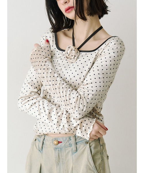 【ポイント】上品な光沢感のあるベロア素材×ドット柄がフェミニンムードたっぷりのトップス。デコルテをきれいに見せるスクエアネックに、同素材のベロアで作られたコサージュをプラスしました。コサージュは取り外し可能で、その日の気分に合わせてアレンジできます。【スタイリング】ホルターストラップデザインで抜け感を演出し、1枚でスタイリングが完成する主役アイテム。スカート合わせでガーリーにも、デニムで外してストリートにもマッチします。コサージュを取って、ジャケットなどのインナーとして華やかさをプラスするのもおすすめです。※着用画像はフラッシュの加減で実際の製品と色味等が異なる場合がございますので、生地のズームアップ画像をご確認ください。※ご利用の端末画面の設定により実際の商品と色味が異なる場合がございます。※正しいサイズはアイテムサイズ表をご確認ください。※商品のお取り扱いについては、脇についている洗濯ネーム類をご確認下さい。【jouetie ZOZOTOWN お買い物ガイド】▼商品をお気に入り登録!♡をクリック!完売商品の再入荷やラスト1点の通知、セール開始時にお知らせ!▼"jouetie(ジュエティ)"をお気に入りブランドに登録!新商品や再入荷など、ブランド最新情報をいち早くお知らせ!