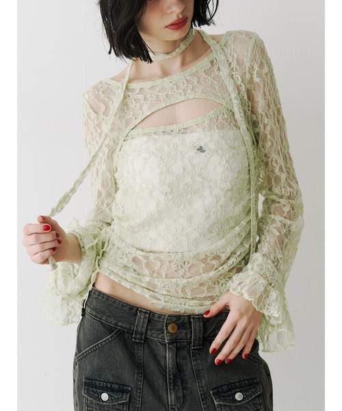 【ポイント】胸元のカットアウトでヘルシーな肌見せが叶うレーストップス。総レースで上品な女性らしさを引き立て、サイドのギャザーで立体感をプラスしたところもポイントです。セットのリボンはチョーカーやストール、ヘアアレンジでリボンとして使うのもおすすめです。【スタイリング】ジャケットやカーディンガンのインナーとしても使いやすいアイテム。グラフィックカットソーをインナーに入れて、インナーを透けさせるレイヤードもおすすめです。同素材のレースフリルレイヤードフレアパンツと合わせての着用可能です。【同素材のおすすめアイテム】・レースフリルレイヤードフレアパンツ(082610700101)※胸元の開き位置が2cm上がります。※着用画像はフラッシュの加減で実際の製品と色味等が異なる場合がございますので、生地のズームアップ画像をご確認ください。※ご利用の端末画面の設定により実際の商品と色味が異なる場合がございます。※正しいサイズはアイテムサイズ表をご確認ください。※商品のお取り扱いについては、脇についている洗濯ネーム類をご確認下さい。【jouetie ZOZOTOWN お買い物ガイド】▼商品をお気に入り登録!♡をクリック!完売商品の再入荷やラスト1点の通知、セール開始時にお知らせ!▼"jouetie(ジュエティ)"をお気に入りブランドに登録!新商品や再入荷など、ブランド最新情報をいち早くお知らせ!