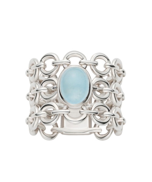 存在感のあるデザインでありながらも、ふっくらと丸いパーツの連なりは透け感があり、肌に優しく沿うしっとりとした着け心地が魅力。 中央にはミルキーアクアマリンの石をセッティング。 柔らかなブルーの色味が優しい印象で手元に彩りを加えます。 <素材について> あえてコーティングをかけないことで、シルバーそのものの美しさをお届けする、LAHのNUDE SILVER(ヌードシルバー)。 白く明るい輝きと、優しい肌触りが魅力です。 ミニジュエリークロス付き ※研磨剤が入っておりますので、パール・天然石には使用しないで下さい。 付属品:ボックス / ショッパー / 保証書 ※配送の都合上、リボンはお付けしておりません。 また、付属品は画像のものと異なる場合がございます。 予めご了承くださいませ。