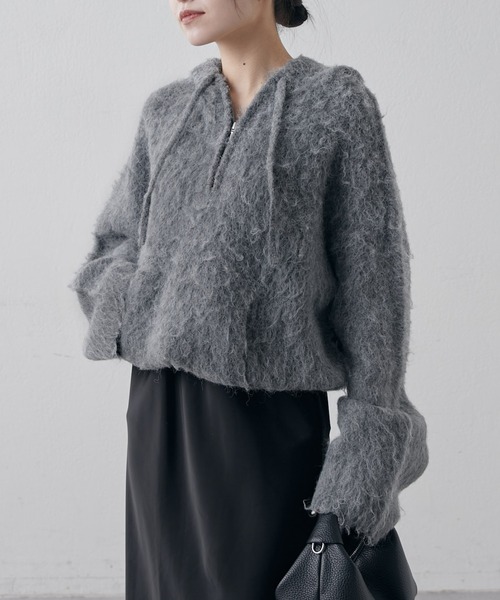 《 Lui's FEMME(ルイス ファム)オリジナル25AWコレクション 》フワフワハーフZIPパーカー●デザイン・ふわふわな肌ざわりがたまらない、シャギーニット素材のダブルジップパーカーが登場!・ゆったりオーバーサイズだから、ラフに羽織るだけでこなれ感たっぷり。・フロントはハーフジップ仕様で、開け方次第で抜け感あるレイヤードが楽しめるのもポイント♪・シンプルながらも存在感のあるシルエットで、トップスとしてもアウターのインとしても使えて着回し力も抜群◎・秋冬のデイリーコーデに欠かせない、可愛さもあったかさも欲張れるおすすめの一枚です◎●素材・ふわふわとした柔らかい素材なので、チクチク感が気になりません◎・落ち感も出るニット素材なので着膨れの心配もなし◎●スタイリング・シンプルなボトムスと好相性◎デニムやスラックスと合わせて、きれいめカジュアルに。・スカートスタイルでフェミニンに◎タイトスカートやフレアスカートと合わせて女性らしく。・レイヤードにも◎ワンピースやキャミソールと重ねて、こなれた雰囲気のスタイリングに。**********************透け感:なし裏地:なし伸縮性:あり光沢感:なし生地の厚さ:普通**********************【ブランド】Lui's FEMME(ルイス ファム)凛とした芯のある女性。 自立した、女性のワードローブをイメージ。洗練されたかっこよさの中に、女性らしさ・かわいさ・セクシーさを持つ。自分自身のスタイル(自分らしさ・個性・生き方・感覚...)を表現できるひとつの手段としての服。肩肘張らない、心地よいリラックス感のあるスタイルを上質な素材、優雅なシルエットで提案。 《商品画像について》ご覧頂いている商品の写真につきましては、できるだけ実物の色に近くなるように努めておりますが、お使いの環境(モニター、ブラウザ等)の違いにより、色の見え方が実物と若干異なる場合がございます。 予めご了承ください。《予約商品について》・こちらの商品はサンプルでの撮影・計測となっております。実際の商品とは、商品の一部仕様が変更になる場合がございます。・撮影サンプル品はブランドタグがついておりません。製品にはタグがつきますので、製品の表に縫い糸が見えたり、着用時にタグが透ける場合がございます。・サンプルの為、混率の詳細が確定しておりません。確定次第、記載いたします。・工場の生産の都合上、納期が変更になる場合がございます。発送日の前後についてはあらかじめご了承ください。・入荷状況により、お客様への発送が店頭販売より遅れる場合もございます。・店頭に陳列していた商品も含まれる場合がございます。《ハートをタップして商品のお気に入り登録》登録カラーの商品の「残りわずか」「再入荷」「値下げ」通知を受け取ることができます。各ショップアプリにてブランドフォロー 新商品などの入荷情報、最新のニュースやお得な情報を受け取ることができます。