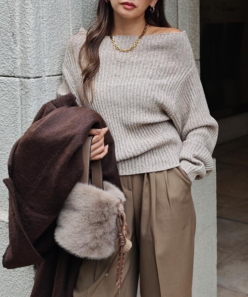 【point】女性らしさを高めてくれるオフショルニットリブ素材なので伸縮性もあり、適度なフィット感でシルエットを拾いすぎず着用できます。何色もの糸を使用し、ミックスカラーデザインなのもポイントオフショルデザインなので、冬の肌見せスタイルを楽しめます。ボトムを選ばず、幅広いスタイリングにマッチする万能ニット透け感:なし厚さ:厚手伸縮性:あり裏地:なし【ブランド紹介】esutoreja / エストレジャ「Cool」×「Sexy」 都会的なカッコいい大人の女性像を表現し、海外モデルのようなクール&セクシーを追求したファッションブランド。スタイルアップアイテムはもちろん、ブランド本来の着やすさや動きやすさも取り入れたアイテムも提案。≪お買い物をよりお楽しみいただくために♪≫・商品のお気に入り登録完売カラーの再入荷通知や、完売間近の通知、セールの通知を受けることができます。・ブランドのお気に入り登録新商品や再入荷など、いち早くブランドのお得な情報を受け取ることができます。カラーバリエーション/レイヤード/スタイルアップ/クール&セクシー/体系カバー/リラクシー/トレンド/旬/海外風/海外ファッション/ワンピース