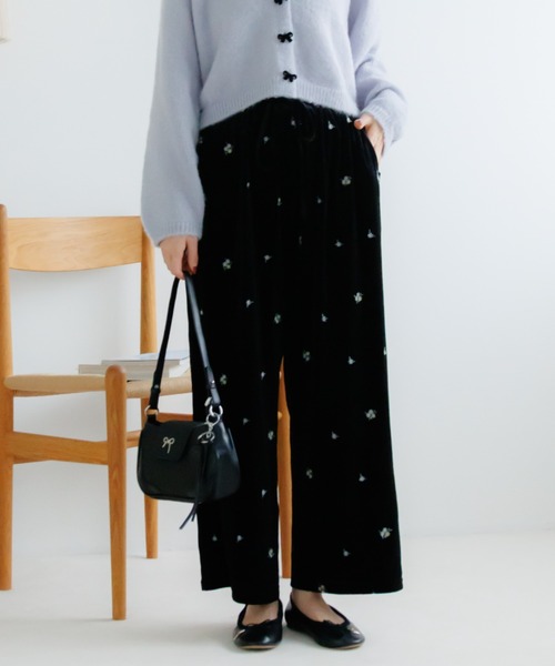 ■デザイン光沢感のあるベロア生地にオリジナル刺繍を施した特別感のあるパンツ♪華やかながら繊細でフェミニンな小花柄刺繍を散りばめたアイテムです。ボディラインを拾いにくい落ち感のあるベロア生地とストレートシルエットの組み合わせが抜け感たっぷり♡ウエストゴム仕様で着脱も楽ちんです。紐でウエストの調節が可能◎裏地付きなので安心して着ていただけます。デートや女子会など、特別なイベントにぴったり♪【同生地のワンピースもございます♪】velour embroidery onepiece■おすすめコーディネート無地のシンプルなトップスとの合わせがおすすめです。ガーリー派さんはfluffy shaggy knitやpopping fancy knitなど、ゆるっとシルエットのショート丈ニットとの組み合わせが◎■flower/フラワー「love&joy」をコンセプトに、商品に愛を込め、お客様に楽しんでいただけるような、ナチュラルでガーリーなアイテムを提案していきます。【お買い物を上手にお楽しみいただくためのPOINT2つ】◎ 購入ボタン横の ♡ (ハートマーク)をクリック! 完売カラーの再入荷通知、残り1点の通知、セールの通知を受け取れます。 (クリックまたはタップで商品のお気に入り登録♪)◎ ショップのトップページにある ♡ (ハートマーク)「お気に入りショップに追加」をクリック! 新商品や再入荷等、いち早くブランドのお得な情報を受け取れます。 (ブランドのお気に入り登録♪)