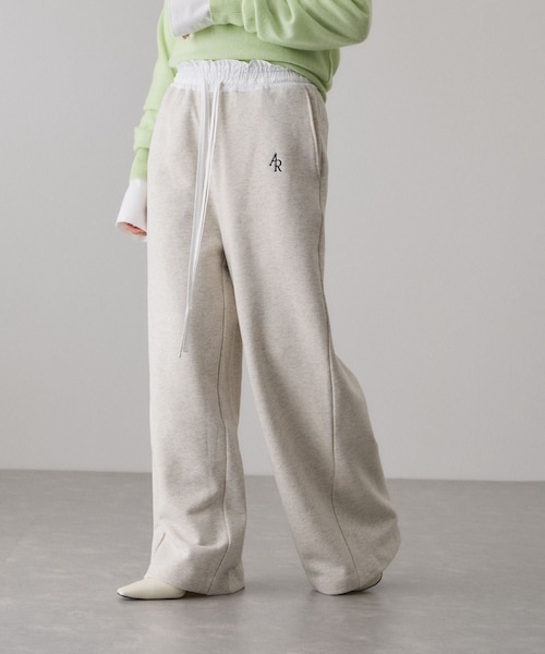 ◇26SS◇ ADAM ET ROPE' FEMME 【Material】 本体:厚みとハリ感のある綿100%の裏毛素材を使用。ツルっとした表面感でカジュアルすぎない生地。 ウエスト部分:ナイロン100%の布帛生地を使用。ややシボ感のあるスポーティーな素材。 【Design】 ナイロンパンツとスウェットパンツをレイヤードしたようなデザインのスウェットパンツ。 フリルのようなギャザーデザインや、共紐リボンなどウエスト部分のディテールにこだわった1着。 太すぎず、ストンと落ちるようなシルエットで楽に決まるアイテム。 オリジナルの華奢なワンポイントロゴもアクセント。 【Color】 杢調のグレーとキナリの2色展開。 ウエスト部分は2色共通でホワイトカラー。 【Styling Point】 ウエスト部分がデザインになっている為、トップスをインしたり、タイトなアイテムと合わせたコーディネートがオススメ。 ジャケットやミドル丈カーディガンなど羽織りと合わせるのも◎ --------------- 透け感:なし 裏地:なし 伸縮性:あり 光沢感:なし 生地の厚さ:中肉 ポケット:両脇、後ろあり --------------- ◇モデル情報 身長:164cm size:38(ロングヘア) 身長:165cm size:38(ボブヘア) ※撮影時の光、お使いのモニター環境によって色の見え方が違う場合がございます。