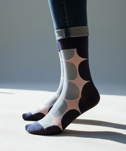 レトロなサークルデザインがポイントのソックス。遊びを効かせたデザインでコーディネートのアクセントとして活躍してくれるアイテムです。デイリーユースに最適なソックス◎Fun & Daily / ファン&デイリーどんな些細な『楽しい』でもそれを一つ一つ積み重なることで日々の暮らしはもっと豊かになる。日々の生活に楽しい彩りを加えてくれる、そんなアイテムを集めたショップ。