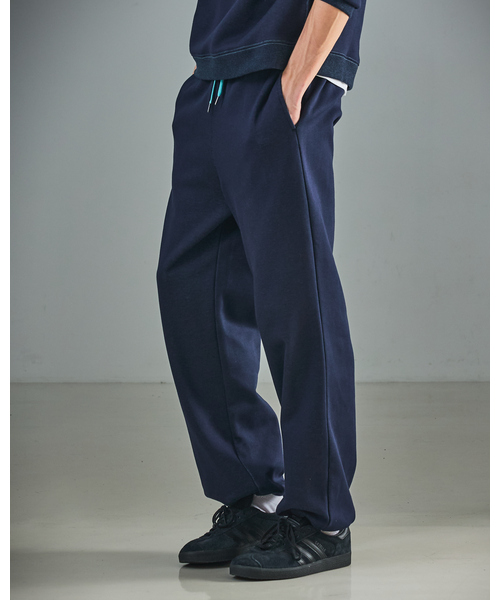 色が引き立つフリーススウェットパンツ表はすっきり、裏はふんわり。 配色のステッチが、さりげなく効くスウェット。 【素材】 きれい目なスムース面と、温かみのあるフリース面を貼り合わせたリバーフリース素材。 保温性と断熱性を兼ね備え、見た目以上に暖かさをキープします。 柔らかな肌触りに加え、独特のハリが生まれるため、リラックスした着心地でもだらしなく見えないのが魅力的。 秋冬の日常に寄り添う、上品さと実用性を両立したスウェットです。 【デザイン】 表裏のカラーコントラストが映えるキャッチーなデザイン。 裏面の配色を生かしたドローコードがアクセントになり、シンプルすぎない表情に。 裾にはドローコードを配置し、裾を絞っての着用も可能。 細すぎず、ややゆとりを持たせたシルエット。 生地のハリと綺麗な表面感で品よく合わせられます。 ボンディングならではの奥行きある配色が、単色では出せない深みのある一着に仕上がっています。 【コーディネート】 シンプルながら、一枚で着映えるアイテム。 トレンドに左右されず、ワードローブに取り入れやすいアイテムです。 シャツやカーディガン、ダウンジャケットなど幅広いアイテムと好相性。 同素材のスウェットプルオーバー(00516020003)もございます。