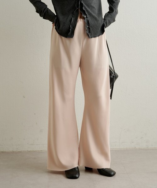 Omekashiで人気だったサテンパンツが再登場!・サテン素材の女性らしさとイージーな履き心地が叶う一枚。・程よくワイドなシルエットが抜け感をプラスしてくれます。・滑らかなとろみのある素材感と光沢感が上品な印象に◎・ウエストは総ゴムなので、リラクシーな履き心地です。・合わせやすいオフホワイトとブラック、スタイリングのポイントになるピンク加えた三色展開。・透け感:なし・裏地:オフホワイトのみ膝上まであり・伸縮性:ややあり・生地の厚さ:普通・光沢:あり・ポケット:なし〈洗濯方法〉手洗い可能--------------------------------------【商品のお気に入り登録】♡をクリックで気になるアイテムをお気に入り登録していただくと、以下の通知を受け取ることができます。・入荷・再入荷・ラスト一点・セール対象時【ブランドのお気に入り登録 】新商品や再入荷、セール、クーポン配布などお得な情報を受け取ることができます。--------------------------------------※画像の商品はサンプルです。実際の商品と仕様、加工が若干異なる場合があります。※カラーにより糸の風合いが異なるため、個体差が生じる場合がございます。※商品の色味は、撮影場所や光の当たり具合などにより色味が異なって見える場合がございます。また、お客様のお使いのPC・スマートフォン等のモニター環境などにより色味が異なって見える場合がございます。予めご了承の上ご注文ください。