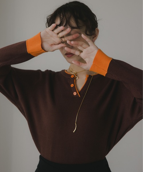 【着回し力抜群の配色カラーがアクセントのリブニット】 首周りのさりげない配色と袖の大胆な配色デザインが特徴のニットプルオーバー。 配色デザインは今季マストバイのアイテム。 襟のスキッパーデザインはコーデに抜け感をプラス。 (襟ボタンの開閉不可です) 210NOUVEらしく、コンパクト過ぎない、少しゆとりのあるサイジング。 ニットの素材感は伸縮性があり、ストレスフリーに着用可能です。 インナーとしてはもちろん、1枚でトップス使いもできる万能アイテム。 冬はアウターの袖からチラ見せするのもかわいいです◎ 冬~季節の変わり目におすすめのニットアイテムです。 ------------ 裏地 なし 透け感 なし 伸縮性 あり 光沢 なし ポケット なし 洗濯方法 手洗い可 ------------ 【インフォメーション】 ▼商品のお気に入り登録 完売カラーの再入荷通知を受け取ることができます。ぜひご登録ください★ ▼ブランドのお気に入り登録 新商品や再入荷などのお得情報を受け取ることができます。ぜひご登録ください♪