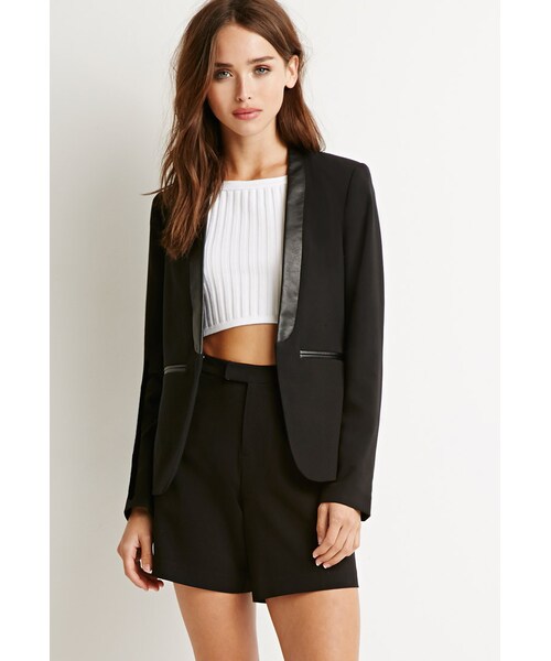大人シックな雰囲気溢れるオープンフロントジャケット。フェイクレザートリムでリュクス感を演出。カジュアルシーンは勿論、パーティーにもお勧めです。フロントポケット、裏地あり。-生産国:ベトナム-素材:ポリエステル76% レーヨン18% スパンデックス6% (素材2)レーヨン100% (コーティング)ポリウレタン100% (裏地)ポリエステル100%-洗濯方法:冷水/手洗い