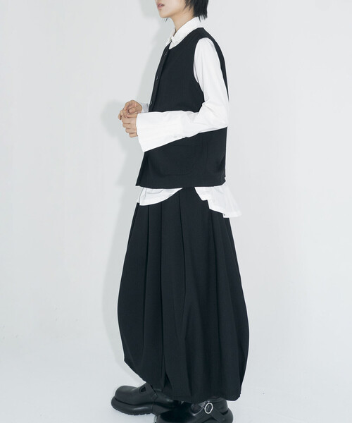 <デザイン>- タック入りロングスカート- ウエストと裾のタックで丸みのあるシルエット- ウエストバックはゴムウエストのイージー仕様- サイドジップ- サイドポケット- 裏地あり<素材>- フラットな表面感のウール混ポリエステル- 適度なハリ※着用、お取り扱いの際は商品についておりますアテンションタグ、洗濯ネームを必ずご確認ください。※モデル撮影画像は、光の当たり具合やパソコンなどの閲覧環境によって、実際の色味と異なって見える場合がございます。商品の色味は商品単体で撮影した詳細画像をご参照ください。メーカー品番:volume wool skirteunoia | ユノイア2014年に設立された韓国のブランド。‘’eunoia‘’はギリシャ語で「美しい考え」という意味。韓国の彫刻、建築、陶器、瓦などによく見られる、なだらかな曲線からインスピレーションを受け、黒と白を基調とした繊細なスタイルを表現。豊かなシルエットとクラシックかつユニークな、美しいスタイルを展開しています。