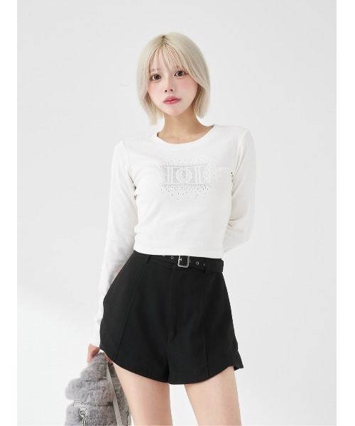 【煌めくロゴで魅せる♡コンパクトロンT】【Design】大人気のコンパクトTシャツからロングスリーブバージョンが新登場♪DDロゴをストーンであしらい、その周りにもストーンを贅沢に散りばめたDarichファンにはたまらないデザイン♡コンパクトなシルエットは合わせのボトムを選ばず、スタイリングを華やかにアップデートしてくれるので、一枚持っておけば重宝すること間違いなし◎【Styling】同週発売のスウェットパンツやルーズなデニムパンツ、ミニボトムなど幅広く活躍します。【Fabric】伸縮性のあるもっちりとしたカットソー生地でストレスフリーな着心地が魅力。デイリー使いしやすいホワイト・こなれ感漂うグレー・華やかなブラックの3色展開。