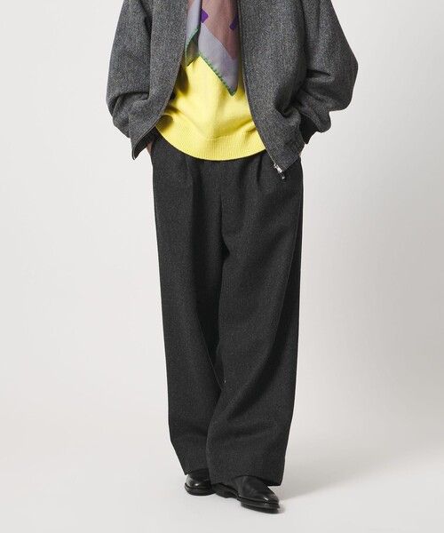 素材感とシルエットで魅せるメルトンワイドパンツ■デザイン深めの2タックが生む自然なボリュームと、ハリ感のある立体的なワイドシルエットが特徴のパンツ。ゆとりを持った腰回りかから裾にかけてストンと落ちる直線的なシルエットが、品のある抜け感を演出します。フロントの小さめのフラップ付きのコインポケットがさりげないアクセントになります。■素材厚手のウールナイロンを混紡したメルトン素材を使用。重厚な生地感と程よいハリのある生地感が特徴的です。メルトン特有の滑らかな表面が、カジュアルにもドレッシーにも馴染む上品な印象をプラス。■コーディネートツイードブルゾン(対象品番:11256000001)(対象品番:11256000004)との組み合わせがおすすめです。============================裏地 :あり透け感:なし伸縮 :なし光沢感:なし============================<District (ディストリクト)>ファッションの本質を支えるのは'創造性'と完成度の高いものづくりを目指す'職人精神'。クリエイティヴィティとクラフトマンシップがテーマのDistrict UNITED ARROWSはファッションの本質的な価値と魅力'を伝え続けます。【注意事項】※商品に「取り扱い上の注意書き」、「洗濯表示」がございます場合は、使用前に必ずご確認ください。※商品画像は、光の当たり具合やパソコンなどの閲覧環境により、実際の色味と異なって見える場合がございます。あらかじめご了承ください。※商品の色味の目安は、商品単体の画像をご参照ください。店舗へお問い合わせの際は、全国のUNITED ARROWS各店舗まで下記の品名/品番をお申し付けください。品名:D W/N MLTN WIDE 2P 品番:11142000002