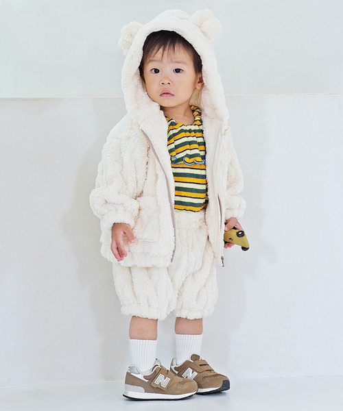 思わず触れたくなるふわもこ感耳つきフードで可愛さも暖かさもひとまとめ■デザインケーブル編み風の立体感が魅力のボア素材を使った、季節感たっぷりのジャケット。フードには小さな耳をつけ、子どもらしいキュートさをプラスしました。ふっくら柔らかく、保温性も高いので、寒い日のおでかけにぴったり。両サイドのポケットや使いやすいジップ仕様など、デイリー使いしやすい工夫も整っています。■スタイリングカットソーやニットにさっと羽織るだけで、冬らしいあたたかみのあるスタイルに。ボトムスを選ばないシンプルなシルエットで、デイリーから公園遊び、おでかけまで幅広く活躍。耳つきフードがアクセントになり、写真映えも抜群です。兄弟姉妹でのお揃いコーデにもおすすめの一枚です。■生地感ふんわり柔らかくあたたかいボア素材。もこもこで保温性が高く、肌あたりもやさしい仕上がり。ふっくらと厚みがあり、秋冬の防寒アイテムにぴったりの生地感です。++++++++++++++++++++++++透け感:なし伸縮:あり厚み:普通++++++++++++++++++++++++※ネームタグ付き※サイドポケット2つあり※モデルが着用している画像は、照明や日光などの撮影時の環境により実物と異なる色味になる場合がございます。商品単体の平置き画像を実物に近いお色味になるよう努めておりますので、お色味のご確認は平置き画像をご参照くださいませ。※お使いのモニター環境によっても実物のお色味と異なって見える場合がございます。予めご理解の程よろしくお願いいたします。ハートマークをポチッ!気になる商品はお気に入り登録をお忘れなく!商品のお気に入り登録をすると...[再入荷][残り1点][セール情報]を受け取れます。MARKEY'Sをお気に入り登録すると...[新商品][再入荷]の情報をいち早く受け取れます。