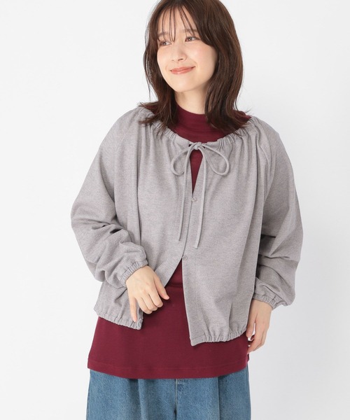 一枚着としても羽織としても着用できる万能アイテム女性らしい雰囲気のギャザーブラウスーーー【素材】レーヨンとストレッチ感が着心地の良い素材を使用。ツイル目の編地や表面起毛の柔らかい風合いが特徴です。【デザイン】前後2WAYで着用できるリボンギャザーブラウス。襟からギャザーがたっぷりと入っているボリュームデザインで、女性らしい印象の一枚。落ち着いた大人なカラー展開も魅力です。トップス ブラウス シャツ ギャザー リボン 2WAYーーー【スタイリング】どちらを前にしても360度素敵なシルエットをお楽しみいただけます。インナーには少し濃いめのカラーを合わせて、季節感を感じるカラーレイヤードもおすすめ◎