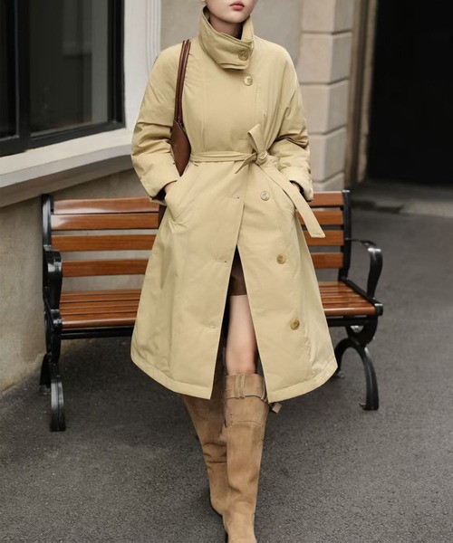 すっきりしたシルエットにダウンを90%詰め込んだ、軽くて保温性抜群のロングコート。シルエットに変化をつけられるウエストベルト付きで、上品な雰囲気からカジュアルスタイルまで幅広く対応。 大きめの襟がデザインのアクセントになり、小顔効果も期待できます。真冬でも暖かく、おしゃれを楽しめる一着です。 デニムと合わせてカジュアルスタイルにスカートやワンピースに羽織ってフェミニンにきちんと感のあるスタイルにも◎