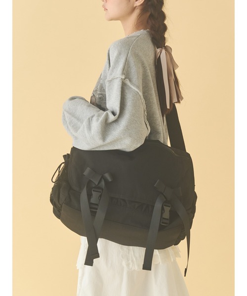 ※アジャスター部分のテープがマット素材に変更になります。 ■デザイン 光を受けてゆらめくリボンがポイントのメッセンジャーバッグ。 見た目以上の収納力で、デイリーにもお出かけにも頼れるアイテムです。 D管にはお気に入りのチャームをつけて自分だけのアレンジも。 カジュアルなフォルムに、リボンのきらめきがそっと甘さを添えてくれます。 ■サイズ感 肩紐の長さは調整可能です。 ■スタイリング あえてガーリーなスタイリングに合わせて、軽やかなバランスを楽しんでみてください。 【商品情報】 透け感:なし 裏地:あり 伸縮性:なし 光沢感:なし 生地の厚さ:普通【商品のお気に入り登録】♡をクリック!完売カラーの再入荷や、ラスト1点の通知、セールの際の通知も受け取ることができます。【ブランドのお気に入り登録】新商品や再入荷など、merryの情報をいち早くお知らせします!ぜひご登録ください♡