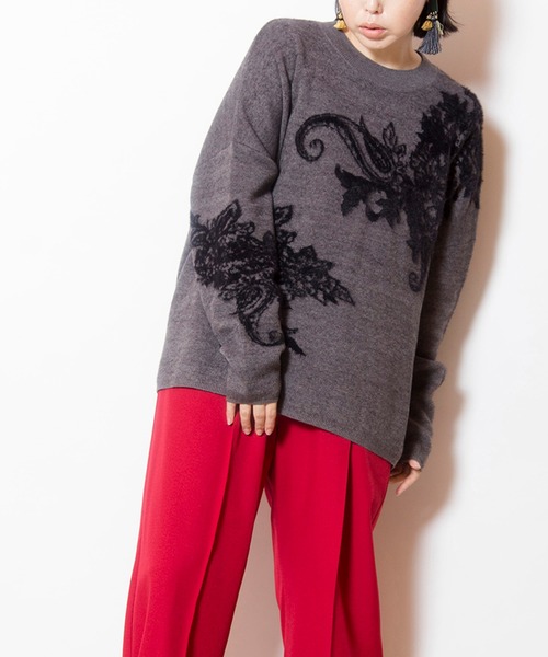 Autumn Winter collectionウェアラブルなオーバーニットに、ヴィクトリアンムードが香るジャガード刺繍がポイント。1枚で存在感を放ちながらも、ボトムスとも合わせやすいシルエットが◎。===========================透け感: なし伸縮性: あり光沢感: なし裏地: なし素材について: 起毛感のある中肉のジャガード編み===========================【洗濯表示】 ドライ石油■商品のお気に入り登録クーポンやタイムセール、再入荷通知やラスト1点などお得な情報を受け取ることができます。ご登録をお忘れなく◎