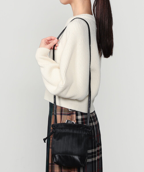 <デザイン/素材>‐ 異素材が調和したクロスバック‐ 使いやすい巾着型‐ 軽量- 持ち歩きやすいサイズ感※着用、お取り扱いの際は商品についておりますアテンションタグ、洗濯ネームを必ずご確認ください。※モデル撮影画像は、光の当たり具合やパソコンなどの閲覧環境によって、実際の色味と異なって見える場合がございます。商品の色味は商品単体で撮影した詳細画像をご参照ください。メーカー品番:mini bucket bageunoia | ユノイア2014年に設立された韓国のブランド。‘’eunoia‘’はギリシャ語で「美しい考え」という意味。韓国の彫刻、建築、陶器、瓦などによく見られる、なだらかな曲線からインスピレーションを受け、黒と白を基調とした繊細なスタイルを表現。豊かなシルエットとクラシックかつユニークな、美しいスタイルを展開しています。