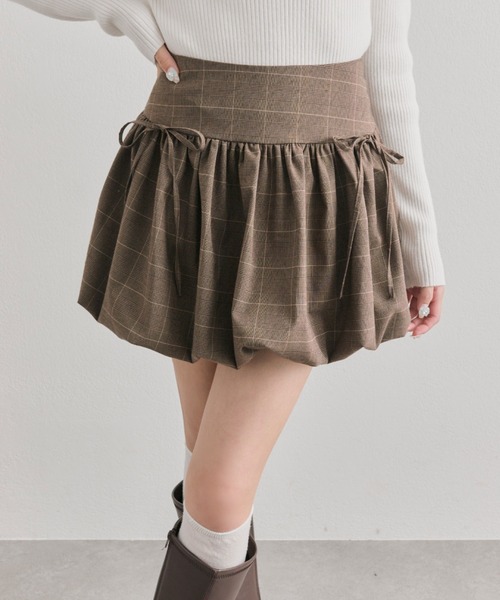 ふわっとシルエットがかわいいバルーンスカート ■デザイン ・丸みのあるバルーンシルエットがトレンド感と可愛さを演出し、美脚効果も抜群です。 ・ウエストの両サイドに施されたリボンが、さりげないガーリーなアクセントになります。 ・ウエスト部分はフィット感がありハイウエストで履けるので、簡単に脚長効果が期待できます。 ・裏地はパンツの形なので、ミニ丈でも安心感があります。 ■カラー ・オフ/ブラウンの2色展開 ■スタイリング ・ショート丈ニットと合わせてバランスよくガーリーに仕上げるのがおすすめ。 ・ブラウスをインすれば、クラシカルな上品なお出かけスタイルに仕上がります。 ・足元はロングブーツやローファー合わせで、甘さを引き締めるのがおすすめ。 ----------------------------- 裏地:あり 光沢感:なし 透け感:なし 伸縮性:なし 手洗い:オフ可能、ブラウン不可 タンブラー乾燥:不可 アイロン:オフ110℃まで、ブラウン150℃まで ----------------------------- model:161cm ※着用、お取り扱いの際は、商品についている品質表示とアテンションタグを必ずご確認下さい。 ※ご覧のモニター環境や撮影環境により実際の商品と多少色味が異なって見える場合がございます。ご理解の程よろしくお願いいたします。 ■お気に入り登録のおすすめ 【気になるアイテムを登録】 ハートをクリックしてお気に入りに登録すると 完売カラーの再入荷やラスト1点の通知、セールの通知を受けとることができます。 【ブランドを登録】 新商品や再入荷、セール通知など、いち早くブランドの情報を受けとることができます。
