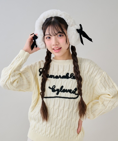 ケーブルコードのような立体感があるロゴデザインのニットです。日常に馴染むベーシックな色合いで、やさしい風合いに心惹かれます。普段使いしやすいクルーネックなのもポイント。どんなボトムにもマッチして着回しが利くアイテムです。【透け感】透けない【生地の厚さ】厚い【伸縮性】あり【裏地】なし【ポケット】なし【アジャスター】なし