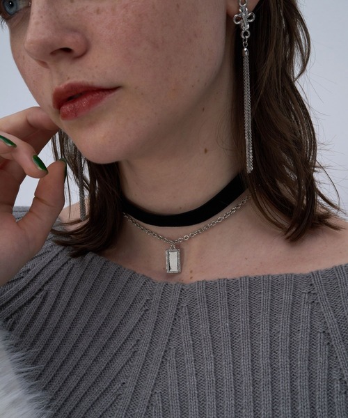 ーーー モチーフ付きのチェーンとベロアの2連チョーカー ーーー point □2連になっているデザインの為、つけるだけでモードな雰囲気に □モチーフ付きでシンプルになりすぎないデザイン □アジャスター仕様で長さ調節可能 styling シンプルになりがちなニットやシャツにつけるアクセサリーとして大活躍間違いなしです。 ベロア素材で上品な印象なので普段使いはもちろん、オケージョンシーンなどでも着用できます。長めのネックレスと合わせても〇 ※加工を施した画像を使用しております。 実物と色味が異なる可能性があるため、色味は詳細後ろにある生地寄り画像を参考にお願いいたします。 あらかじめご了承下さい。