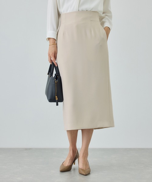 スタイルアップが叶うセミフレアスカート。上品で着心地の良い万能アイテム【デザイン・シルエット】 後ろにさりげなくゴムが入ったタイトスカートです。 ヒップラインが目立たないようややゆとりのあるシルエットで、ストレスなく着用できます。シャープに見える美しいラインもポイントです。 セレモニーやママ向けのシーン、お仕事・通勤など、さまざまな場面で着回せる一着です。 同素材のジャケット、テーパードパンツ、ワイドパンツ、タイトスカート、ブラウスと組み合わせれば、セットでも単品でも自由にコーディネートできます。 【おすすめのスタイリング】 同素材のジャケットやペプラムブラウス合わせや、ツイードジャケット、単品使いとしてもボウタイブラウスなど、きれいめなブラウスとの相性が◎ 【素材】 トリアセテートの平二重組織でドライタッチ、膨らみ、落ち感が際立つ素材に仕上がっています。糸特性でもある発色性の良さが、深みのある色を出し、高級感のある雰囲気を演出してくれます。 ---------------------------- 透け感:ベージュ(27)は少しあり 裏地:あり 伸縮性:ややあり 光沢感:なし 生地の厚さ:中肉 ポケット:あり 開き方:ファスナー 洗濯:手洗い可能 ---------------------------- 【モデル情報】 モデル身長:175cm 着用サイズ:38 Atsukoさん身長:175cm 着用サイズ:38 【2026 Spring/Summer Ceremony シリーズ】 セットアップやアンサンブルでご着用いただけます。 ・トリアセテートダブルクロス素材シリーズ クルーネックジャケット(品番:GGV26030) Vネックジャケット(品番:GGV26020) ペプラムブラウス(品番:GGGH26080) テーパードパンツ(品番:GGS26070) ワイドストレートパンツ(品番:GGS26080) タイトスカート(品番:GGC26060) フレアワンピース(品番:GGE26000) ・ツイードシリーズ ノーカラージャケット(品番:GGV26040) ジレ(品番:GGJ26040) ・セレモニー向けアイテム ボウタイブラウス(品番:GGH26090) ジョーゼットシフォンプリーツワンピース(品番:GGE26030) 【着用シーン】 学校行事:セレモニー*、入園式*、卒園式*、入学式*、卒業式*、説明会、学校行事*、授業参観日*、受験 冠婚葬祭:フォーマル*、同窓会*、食事会*、発表会*、顔合わせ*、ご挨拶*、七五三*、お宮参り* ビジネス:オフィス*、お仕事*、通勤*、入社式、面接、面談 *がおすすめの着用シーンです。 おすすめの着用シーンだけではなく、ロペのセレモニーシリーズはセレモニーはもちろん、フォーマル・オフィスといった、幅広いシーンで着用できるようになっております。 また、単品でもコーディネートがしやすく、シーンに合わせて様々なインナーと合わせられる、シンプルで着回しができるデザインです。 新生活や一生に一度の大切なハレの日を、ROPE'のセットアップシリーズでお迎えください。 ※画像の商品はサンプルです。実際の商品と仕様、加工、サイズが異なる場合がございます。 ※撮影場所やライティング、お使いのモニター環境によって色の見え方が異なる場合がございます。 ※商品のカラーは画像の色味をご参照ください。動画は仕様説明のため、色味が実物と異なる場合がございます。