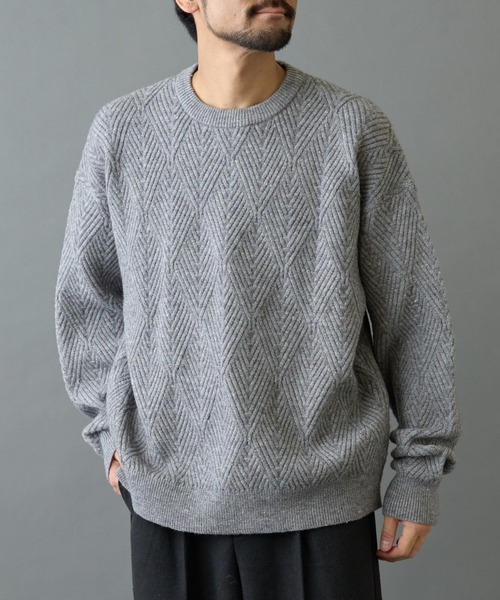 【さりげないタイル柄で上品な印象に】クラシカルなタイル柄のデザインが特徴的なニットプルオーバーです。主張しすぎない上品なタイル柄が落ち着いた大人の雰囲気を演出します。シルエットは適度にゆとりを持たせ、リラックス感ときれい見えをバランスよく両立◎また、程よい厚みなので冬でも暖かく合わせられます。カジュアルからちょっとしたキレイめスタイルまで、幅広いシーンに対応します。【商品ポイント】・上品なタイル柄がアクセントに・柔らかくストレスフリーな着心地・カジュアルにも、キレイめにも◎----------------------------------------------------■商品特徴洗 濯 方 法 :手洗い可裏 地 :なし透 け 感 :なし伸 縮 性 :あり光 沢 感 :なし生地の厚さ:普通----------------------------------------------------■素材アクリル45%, ナイロン26%, ポリエステル29%----------------------------------------------------※着用、お取り扱いの際は、商品についている品質表示とアテンションタグを必ずご確認下さい。※商品タグに記載されている商品名がWEBでの表記名と異なる場合があります。※実際の商品と仕様、加工、サイズが若干異なる場合がございます。※照明の関係により、実際よりもやや明るく見える場合がございます。またパソコンなどの環境により、若干製品と画像のカラーが異なる場合もございます。予めご了承くださいませ。【お気に入り登録】してお得な情報をCHECK!!・「商品のお気に入り登録」で再入荷通知や、ラストの通知、セール通知も受け取ることができます。・「ブランドのお気に入り登録」で新商品や再入荷など、お得な情報を受け取ることができます。
