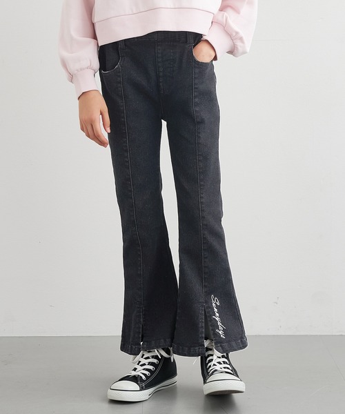 裾のハート刺繍がポイント♪ デニムフレアパンツ■デザイン・シルエット・裾のハート刺繍がガーリーなアクセント・脚をすっきり見せるフレアシルエットでスタイルアップ効果◎・ウエストは総ゴム仕様でラクなはき心地■素材・柔らかくストレッチの効いたデニム素材で動きやすさ抜群・シーズンを通して活躍する程よい厚み・デイリーにもお出かけにもぴったりな万能素材■コーディネート・スウェットやTシャツと合わせてカジュアルに・ブラウスやニットと合わせてガーリーMIXにも◎・足元はスニーカーでもブーツでも合わせやすいデザイン伸縮性:ウエスト部分のみあり透け感:なし裏地:なしポケット:あり生地感:柔らかいデニム生地注意点:素材の特性上、色落ちが避けられません。淡色系との組み合わせはご注意下さい。また、洗濯などにより色や風合いが変化します。必ず単独で洗濯して下さい。お洗濯方法によっては縮みや色あせの可能性あり。乾燥機等のご使用はお控え下さい。▼生地や素材の性質により2cm前後サイズ誤差が出る場合がございます。▼モデル着用写真は撮影環境により、多少実際のカラーと異なる場合がございます。▼色落ちの恐れがありますので、他のものと分けて洗って下さい。▼当商品は機械による生産の過程上、『生地を織る際の糸の継ぎ目』や多少の『ほつれ』、繊維の『混紡』、形やサイズに多少の『誤差』が生じる場合がございます。ジュニア ボトムス パンツ デニム デニムパンツ 刺繍 ストレッチ ガーリー 伸縮性 ウエストゴム お出かけ服 子供服 スリット 120 130 140 150 COCA