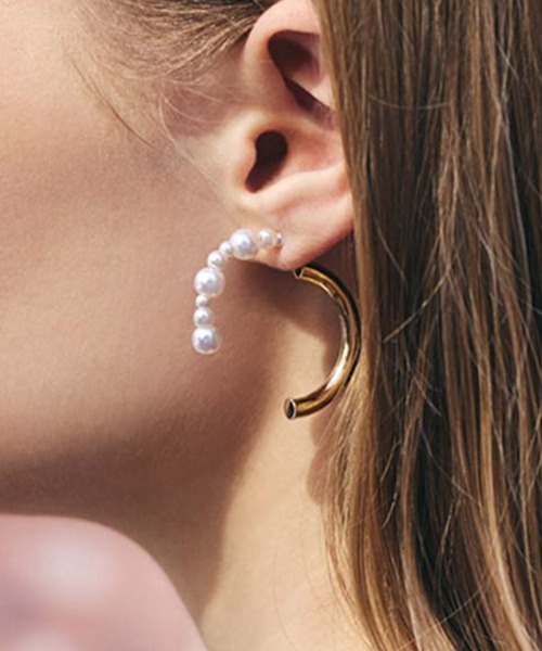 上品ながら存在感のあるパールコンビピアス 艶やかなゴールドのハーフフープとサイズが異なるパールがコンビになったピアス。 華やかさと上品さを兼ね備えたデザインです。 デイリーはもちろん、結婚式、パーティー、二次会、デート、ディナー、オケージョンなどのシーンにもおすすめ。