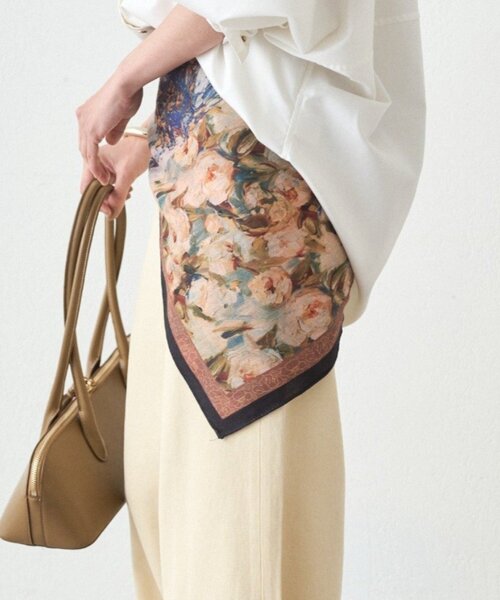 まるで絵画を纏うような、ヴィンテージアートスカーフ ■デザイン 一枚のスカーフに、時を超えた美意識が凝縮された、ヴィンテージアートスカーフ。 落ち着いた色合いでまとめられたパッチワークパターンは、まるで美術館に飾られた絵画。 柄は、様々な花柄や風景画、ダマスク柄などを組み合わせ、クラシカルでありながらも洗練された印象を与えます。普段の装いにプラスするだけで、上品で華やかな雰囲気を演出してくれます。 ■コーディネート 首元に巻けば、顔周りを明るく華やかに。 ヘアアレンジに取り入れれば、こなれ感のあるスタイルが完成します。 バッグのハンドルに結んだり、ベルトとして使ったり、アクセサリー感覚で取り入れるのもおすすめです。 シンプルなトップスやワンピースに合わせるだけで、コーディネートがぐっと洗練された印象に。 カジュアルなデニムスタイルに合わせれば、大人の女性らしい上品さをプラスできます。 オフィススタイルから、お呼ばれなどのパーティーシーンまで、幅広いシーンで活躍してくれる ■素材 ポリエステル100% 【GALENA/ガレナ】 日々のスタイリングにアートを。 ”いつもの私”が”特別な私”になる。 日常に溶け込むスペシャルなアイテムを。 MODERNをキーワードに ACCESSORY・BAG・SHOESを提案します。 【お気に入り登録でお得な情報をお知らせいたします 】 完売カラーの再入荷やラスト1点の通知、セールの通知を受けとることができます。 【ブランドのお気に入り登録】 新商品や再入荷、いち早くセールやクーポンなどのブランドの情報を受けとることができます。 生産の都合上、お届け時期が前後する場合がございます。 システムの都合上、店舗より入荷が遅れる場合がございます。 実際にお届けする商品と仕様やサイズが異なる場合がございます。 照明や光の当たり具合で色味が違って見える場合があります。