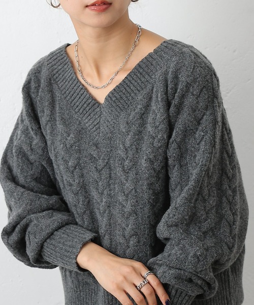 【ざっくり感が可愛いケーブルニット】立体感のあるケーブル編みで、シンプルながら存在感のあるケーブルニットです。前後2WAYで使えるのでVデザインで顔周りをシャープに、さらにクルーネックで女性らしい抜け感を演出し、気分に合わせて着方を変えられます。モチモチとした柔らかい素材感なのも嬉しいポイント。パンツにもスカートにも合わせやすい丈感なので着回し力も抜群です。冬本番はハイネックやシャツなどをレイヤードしてあげるとロングシーズン着ていただけます。【商品ポイント】・前後2WAY仕様・程よいゆったり感で体型カバーも◎・カジュアルにもきれいめにも合わせやすい----------------------------------------------------■商品特徴洗 濯 方 法 :手洗い可裏 地 :なし透 け 感 :なし伸 縮 性 :あり光 沢 感 :なし生地の厚さ:普通----------------------------------------------------■素材ポリエステル65%, アクリル13%, ナイロン13% , 毛6%, ポリウレタン3%----------------------------------------------------※着用、お取り扱いの際は、商品についている品質表示とアテンションタグを必ずご確認下さい。※商品タグに記載されている商品名がWEBでの表記名と異なる場合があります。※実際の商品と仕様、加工、サイズが若干異なる場合がございます。※照明の関係により、実際よりもやや明るく見える場合がございます。またパソコンなどの環境により、若干製品と画像のカラーが異なる場合もございます。予めご了承くださいませ。【お気に入り登録】してお得な情報をCHECK!!・「商品のお気に入り登録」で再入荷通知や、ラストの通知、セール通知も受け取ることができます。・「ブランドのお気に入り登録」で新商品や再入荷など、お得な情報を受け取ることができます。