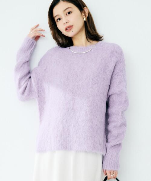 【デザイン】 滑らかな肌触りと毛足の長いヘアリー素材を使用したプルオーバー。 ワイドなサイジングにクロップド丈、リラックスした着心地でトレンド感のあるゆったりとしたシルエットが、デイリースタイルから特別な場面まで幅広く活躍し、エレガントさとカジュアルさを両立させています。 レイヤードスタイルやシンプルなボトムとのコーディネートでさまざまなシーンにフィットします。 同素材のカーディガンの展開有。(商品番号:153-34652) 【素材感】 一般的なアルパカとは毛の形状が異なり、一本一本の繊維が細く滑らかで、モヘヤのような光沢と毛足の長さが特徴のスーリーアルパカ高混率で紡績された、柔らかな手触りと毛足の長いヘアリー感が特徴の素材。 【着こなしポイント】 今季はニットにニットを巻くスタイリングがおすすめ。 同素材のカーディガンをふわっと巻いて光沢のある綺麗めなスカートで華やかに、シャツをインナーにレイヤードしてドロストパンツでカジュアルなスタイリングも様々なシーンにフィットします。 ※照明の関係により、実際よりも色味が違って見える場合があります。また、パソコン・スマートフォンなどの環境により、若干製品と画像のカラーが異なる場合もございます。 モデル情報:身長163cm B80 W59 H82 着用サイズ:02(M) 店舗へのお問い合わせ商品番号:153-14652 ●製品寸法: 02(M):着丈56cm B105cm 袖丈46cm 肩幅56cm 備考: