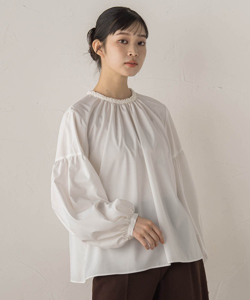 ネックのブレードがポイントのデザインブラウス。 アクセサリーいらずで首元を華やかに見せてくれる優秀な1枚です。 柔らかな素材感で着心地も軽く、ジャケットインにもおすすめ。 一枚で華やぎを添えてくれる、オン・オフ兼用の優秀アイテムです。 ---------------------------------------------------------------- 洗濯方法 家庭洗濯:液温は30℃を限度とし、洗濯機で非常に弱い洗濯ができる。 自然乾燥:日蔭の吊り干しがよい。 アイロン:底面温度160℃を限度としてアイロン仕上げができる。 ドライクリーニング:ドライクリーニング禁止。 ---------------------------------------------------------------- ※画像の商品はサンプルとなりますので実際の商品と仕様、加工、サイズが若干異なる場合がございます。 ※お客様のモニター環境により実際のお色と多少異なる場合がございます。 ※撮影状況や光の当たり具合により、色合いが異なって見える場合がございます。 ※商品タグに記載されたサイズはヌードサイズです。実際の商品のサイズは商品情報の実寸をご確認ください。 --------------------------------------------------------------------▼商品のお気に入り登録 ハートマークをクリックし、お好きなカラーを選んでお気に入りに登録 完売カラーの再入荷通知や、ラスト1点の通知、セールの通知も受け取ることができます。 ▼ブランドのお気に入り登録 新商品や再入荷等、いち早くブランドのお得な情報を受け取ることができます。 --------------------------------------------------------------------