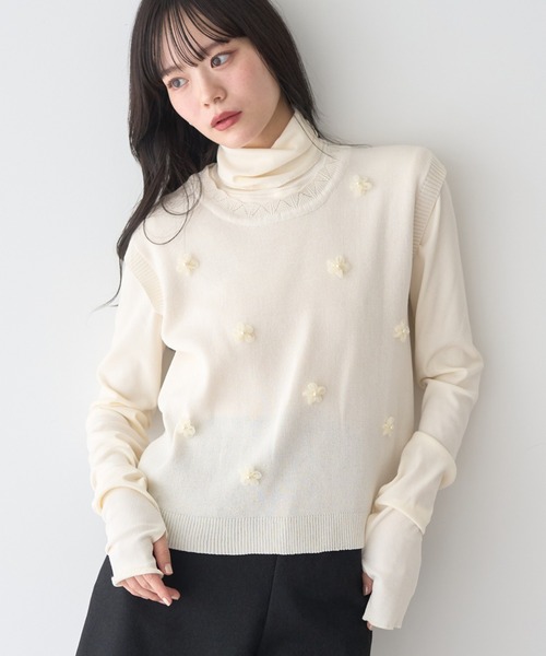 ふんわりとした風合いのニットに、立体的なフラワーモチーフをあしらったニットベスト。シャツやワンピースとのレイヤードにも映える一枚です。程よい長さとリラックスしたシルエットで、デイリーからお出かけまで幅広く活躍します。※サンプルにて撮影を行っております。実際にお届けする商品と仕様やサイズが異なる場合がございます。※モデル着用画像は光の当たり具合で色味が違って見える場合がございます。商品の色味は物撮りの画像をご参照ください。● earth music&ecology ●(アースミュージック&エコロジー)「いいことある服。」たかが服。されど服。波風の多い日々のなかでもほほえんで前を向くあなたを、つつんで一緒に歩きたい。 いいことあるかも。そんな期待までまとえる服をあなたに。earth music&ecologyは、毎日を頑張る女性たちをちょっと前向きにするブランドです。 ▼ 商品のお気に入り登録がおすすめです ▼商品ページ内の「♡」ハートマークをクリック。完売時の再入荷や、最後の1点の通知、コーディネート画像がアップされたとき、お得なお値下げの際の通知を受ける事ができます。【お知らせ】ページでも通知が確認できます。