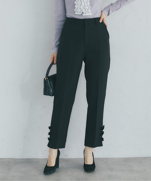 品のある可愛さで着回しやすい万能パンツ。 裾部分にパールとベロアリボンをあしらい、 季節感のある愛らしさを演出しました。 腰回りや太ももにゆとりがありつつ 裾に向かって細くなるテーパードシルエットで 足のラインをすっきりと見せ、 さり気なく脚長効果が期待できる1着です。 上品な甘さのデザインだから ニットからブラウスまで幅広く合わせやすく、 ONもOFFも使える便利なアイテムです。 【Information】 ◆《お気に入り登録》がオススメ◆ ・「商品のお気に入り登録」で再入荷通知や、ラストの通知、セール通知も受け取ることが出来ます。 ・「ブランドのお気に入り登録」で新商品や再入荷など、お得な情報を受け取ることが出来ます。 ※撮影時のライティング、ご覧になっているモニター・PC環境により、実際の商品と色味が異なって見える場合がございます。予めご了承をお願い致します。 ※モデル着用画像は実際の色と多少異なる場合がございますのでトルソー画像をご確認ください。 大人ファッション 大人フェミニン 大人ガーリー 大人エレガント 大人女子 大人コーデ お仕事コーデ おすすめコーデ 今日コーデ オフィスコーデ モテコーデ きれいめコーデ 上品コーデ デートコーデ お呼ばれコーデ 大人かわいい 大人可愛い 大人きれいめ 上品 女性らしい きれいめカジュアル 大人カジュアル ファッション通販 お洒落 トレンド フェミニン エレガンス ガーリー