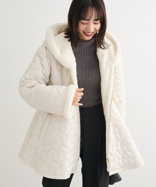 甘めディテールをたっぷり詰め込んだフェミニンなハートキルトフレアコート。ウエストのドロストリボンからふわっと広がるシルエットがより女性らしさを引き立てます。袖口やフード内側からフロントにかけてフェイクファーを施した暖かな作りも嬉しいポイント。1枚さらっと羽織るだけでレディなメリハリコーディネートが完成するおすすめのアイテムです。透け感[なし]生地の厚さ[普通]光沢感[ややあり]伸縮性[なし]裏地[あり]ポケット[あり]※モデル着用画像は、光の当たり具合で色味が違って見える場合がございます。※お使いのモニター環境によって商品の色味が違って見える場合がございます。●Green Parks (fuuwa / topic / sara)●(グリーン パークス)20以上の人気ブランドを取り扱う、全国に約320店舗展開するアパレルセレクトショップ。ベーシックながらもさりげなくトレンドを取り入れたオリジナルブランドchocol raffine robeも展開。▼ 商品のお気に入り登録がおすすめです ▼商品ページ内のハートマークをクリック。完売時の再入荷や、最後の1点の通知、コーディネート画像がアップされたとき、お得なお値下げの際の通知を受ける事ができます。【お知らせ】ページでも通知が確認できます。