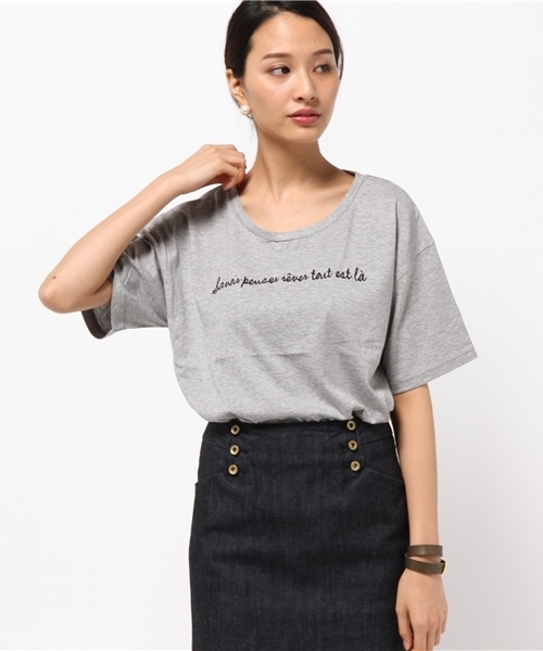 Discoat Parisien(ディスコートパリシアン) シンプルな刺繍ロゴがフレンチシックなイメージを与えるTシャツ。ドロップショルダーから続く長めの半袖で、今季らしい抜け感を表現しました。シルエットにドレープを生み出すコットンレーヨンの柔らかな風合いは、ひと目で違いが分かるほど。ボリュームが出過ぎないよう、丈はやや短めにカットされています。