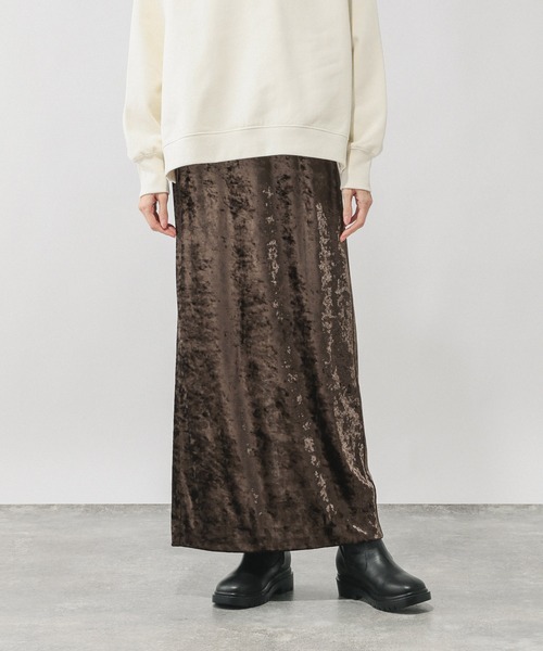 光沢が揺らめくクラッシュベロア・デザイン今季マストハブのクラッシュベロアを使用した、トレンド感満載のスカート。特有の光沢感が動くたびに表情を変え、秋冬の装いを一気に華やかにします。すっきりとした程よいIラインシルエットでスタイルアップ効果も抜群。シンプルなニットやブラウスに合わせるだけで、こなれ感・トレンド感のある着こなしが完成する主役級の一枚です。・おすすめスタイリング華やかなアイテムなので、シンプルなリブニットやタートルネックを合わせるのがおススメ。ロゴスウェットやパーカーでカジュアルダウンすれば、こなれ感がアップします。ハーフジップニット/608246と合わせるのがおすすめです。パンツタイプベロアパンツ/611188-----------------------------透け感:やや透ける伸縮性:あり生地感・厚さ:普通裏地:あり-----------------------------・ホワイト系その他7で計測しています。(こちらは参考情報となります。カラーにより多少の誤差がございます。)・こちらの商品はGLOBAL WORK独自の採寸方法となっています。本サイトのサイズガイドと採寸方法が異なる場合がありますのでご了承ください。・お買い物が便利になる機能がたくさん・商品のお気に入り登録完売アイテムの再入荷通知、ラスト1点、またクーポンやお値下げ通知をお知らせします。・ブランドのお気に入り登録新商品や再入荷のお知らせ等、いち早くブランドのお得な情報を受け取ることができます。ぜひご登録ください。