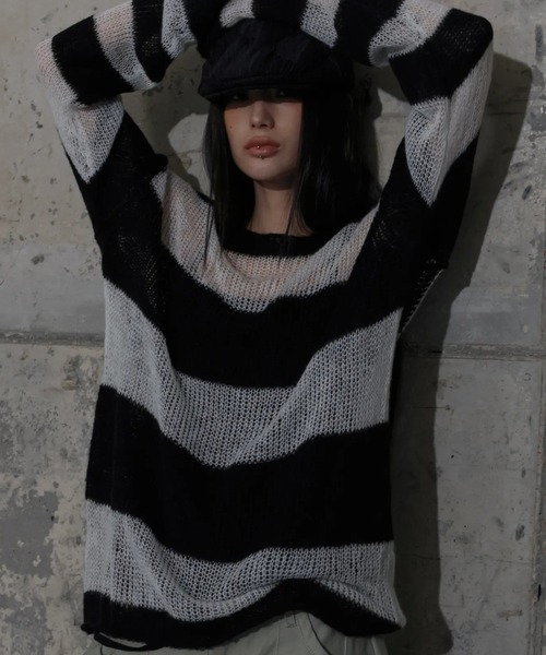 【日本未発売/WEB限定】FANCY CLUB(ファンシークラブ)/シースルー ヘイリー ストライプ オーバーサイズ ニット/HAILEY STRIPE KNIT