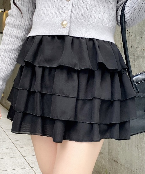 【ボリューム感たっぷり!3段フリルがキュートなスカパン】 ▼Design ふんわり程よいボリュームのあるシルエットでガーリーな印象に♪ ウエスト下からふわりと広がるシルエットが気になる腰回りをすっきり。 バックウエストはゴムになっているので着心地も快適です。 裏地はパンツタイプになっているので1枚でも安心です。 ▼Styling 短丈カーディガンやブラウスで甘めガーリーなコーデはもちろん スウェットやパーカーなどカジュアルなアイテムを合わせるのも◎ 幅広いテイストで着回し力抜群の優秀アイテムです♪ ・バックウエストゴム 【以下オフホワイト参考。カラーにより多少の誤差あり】 ・透け感:透ける(表地) ・伸縮性:なし(表地) ・生地の厚さ:薄め(表地) ・裏地:あり 詳細画像はこちらから確認できます。 ▼Recommend ・フリル ・バックウエストゴム ・インナーパンツ付き ・ガーリー ・韓国ファッション ・参戦服